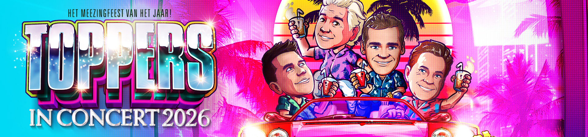 Voel de warmte van een zwoele zomeravond, de gloed van neon aan de skyline en de opwinding van een nacht waarin alles kan en niets moet. In 2026 nemen de Toppers je mee op een tropische trip vol glitter, groove en pure summer vibes. Verwacht de grootste zomerhits, heerlijke meezingers, verrassende mash-ups en een show vol warmte, kleur en spektakel. Stap in de wereld van het bruisende Miami, waar de nacht nooit stopt en de muziek altijd klinkt.